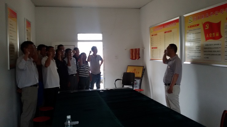 6月22日上午9時,埒南制鹽分公司會議室,氣氛莊重活潑,每位黨員都佩戴上精致的黨徽,面對鮮艷的黨旗,莊嚴的舉起右手,重溫入黨誓言。在莊嚴的宣誓聲中,埒南黨支部“慶七一”給黨員過政治生日活動正式拉開序幕,本次黨日活動共有三項議程,一是重溫入黨誓言、二是給黨員發放政治生日禮品,三是開展“兩學一做”專題教育。