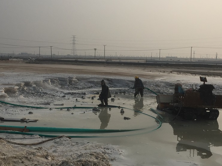 1月12日,在日曬制鹽新河分公司1班,除硫的各項工作正在有條不紊地運行著,除硫操作手緊握高壓水槍,對硫酸鈣沉淀區進行沖刷。眼下正是除硫工作的黃金時期,但是因今年過年時間比往年早,扒鹽工作也較往年提前,時間緊、人員缺、任務重,新河制鹽分公司迎難而上,緊抓有利天時,合理用工統籌,將后勤維護人員安排到有需要的班組,解放班組現有勞動力,廣大干群放棄節假日的休息,加班加點,加快推進除硫進度,爭取在年前完成除硫工作。讓廣大員工讀過一個祥和、安逸的春節。截止發稿日期,已完成3個洼站的除硫工作,另外4塊的除硫工作在周六周日能順利完成。(新河制鹽邱利民)