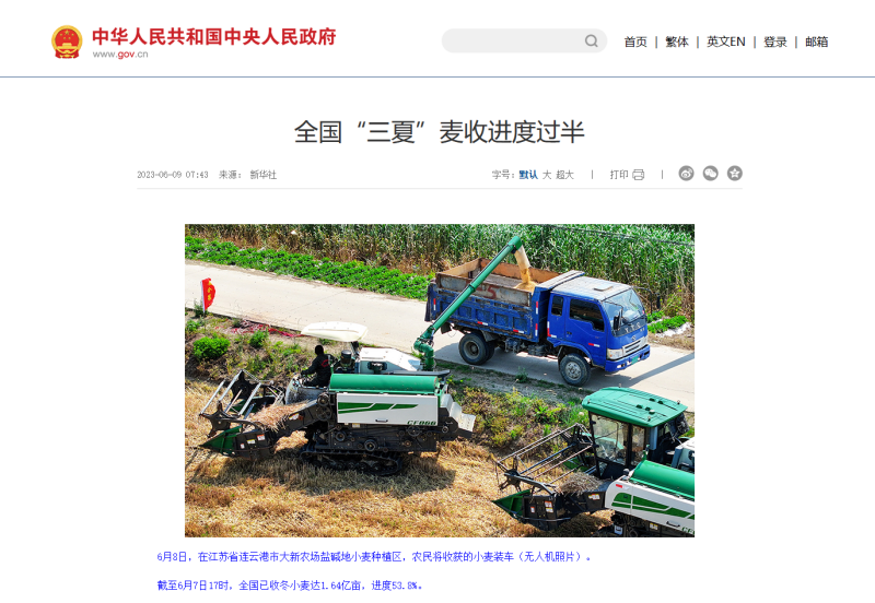 自6月8日麥收工作啟動以來,青口投資公司高度重視、精心組織,科學高效調動全方面因素,全力投入耐鹽堿小麥收割工作,開創了農業高質發展新局面,受到了中國政府網、人民網、新華社、新華網、連云港日報、蒼梧晚報等中央、省市級主流媒體的廣泛關注。(青 宣)