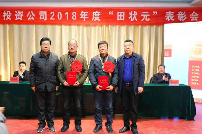 11月29日,在職工活動室隆重舉行2018年度“田狀元”表彰大會。投資公司黨委書記、董事長胡傳法及班子全體成員參會。基層副科級以上、機關全體管理人員及部分條田工參加。會議由投資公司黨委副書記、工會主席史祥平主持。
