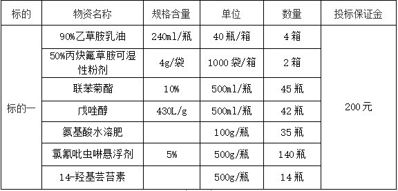 3.原則上由投標單位按貨物需求進行投標,若規格不符,投標單位也可以根據自有包裝規格進行投標。本次招標采購,確定生產廠家或代理商、農藥品種、規格、劑型和農藥單價。