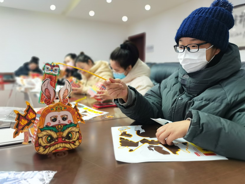 活動現場,公司工會帶領女工們一起制作燈籠,打開材料包,按照步驟進行裁剪、折疊、粘貼、裝燈。經過一個小時的努力,一個個充滿喜慶和年味的燈籠就做完了,大家紛紛和自己的作品合影,并表示要將自己制作的燈籠送給家人。