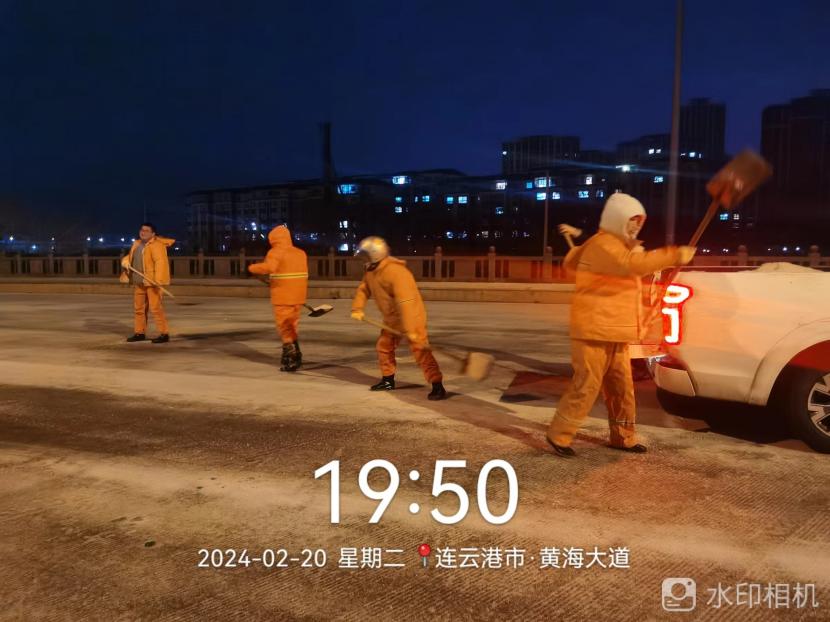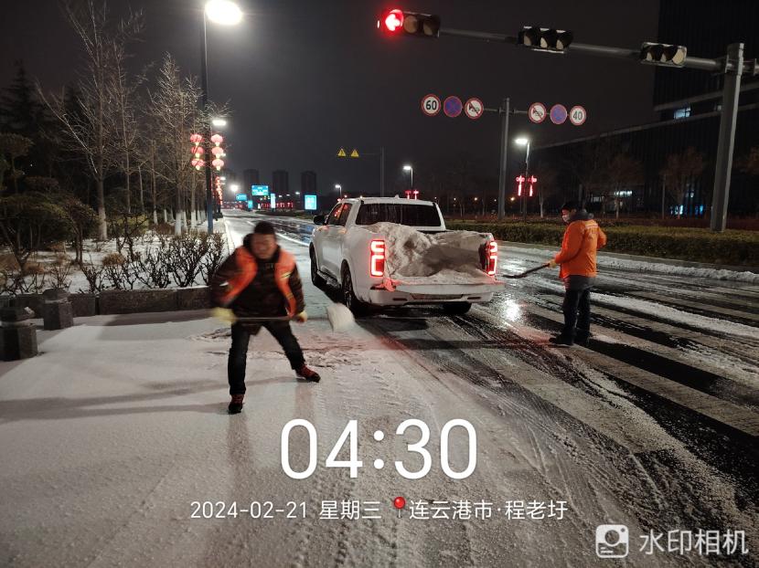 ? ? 2月20日晚,港城迎來又一輪降雪,低溫雨雪冰凍天氣對城市道路交通和市民出行產生較大影響。為確保雪天道路暢通及市民出行安全,綠化分公司聞雪而動,從2月19日晚開始,組織應急隊伍連夜行動,在花果山大道、黃海大道等開發區主干道拋撒融雪劑,開展清雪除冰工作,掀起一場齊心協力、團結互助的戰風雪、保通暢行動。
