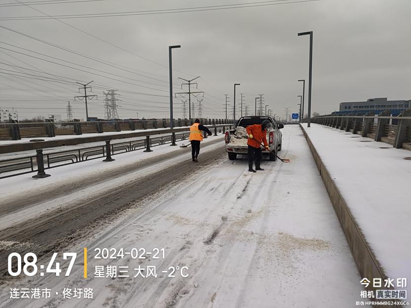 ? ? 同時,實施24小時統籌協調、多方調度,每小時收集匯總轄區道路積雪、結冰情況等,加強分析研判和信息上報,并加大路巡頻次,同時與兄弟單位做好聯勤聯動,對易結冰點、路段多舉措加大除雪力度,全力以赴確保轄區道路暢通。
