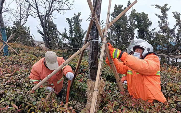 降雪發生以來,在清理路面積雪保障群眾安全通行的基礎上,該公司迅速組織班組開展園林苗木積雪冰凍清除工作,重點對黑松、雪松、龍柏、球類等苗木積雪進行清理,及時為樹木“減壓”,避免積雪壓彎或壓斷樹枝,及時消除安全隱患,保護轄區內綠化成果。截至目前,共計清除各類園林苗木積雪8600余株。(陳小東)
