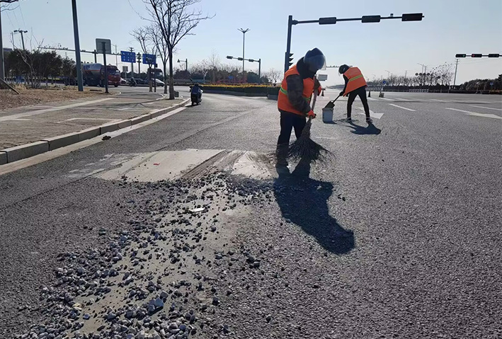 燈塔路路口,巡查人員發現大面積車輛拋灑物,生產骨干張學軍、徐習東、陸永柱接到公司應急處理電話第一時間趕赴現場,盡管天氣寒冷,但是大家干的熱火朝天,共清理泥塊30多處,長達800多米長;轉運石子、石塊50多車,他們再次用行動彰顯黨員示范風采。